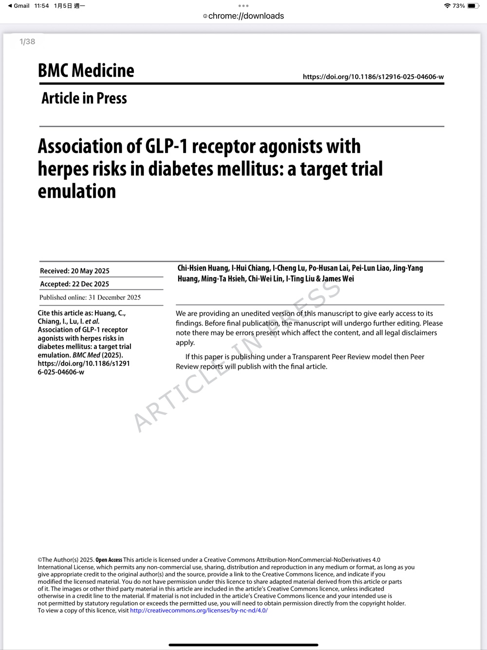(參考文獻:Huang, C., et al. BMC Med (2025). Association of GLP-1 receptor agonists with herpes risks in diabetes mellitus: a target trial emulation)