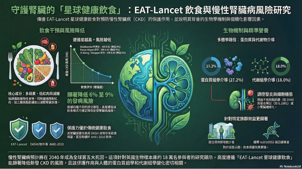 2026年1月,CMAJ加拿大醫學雜誌比較三種飲食習慣,對於慢性腎臟病患者的關聯性,發現: