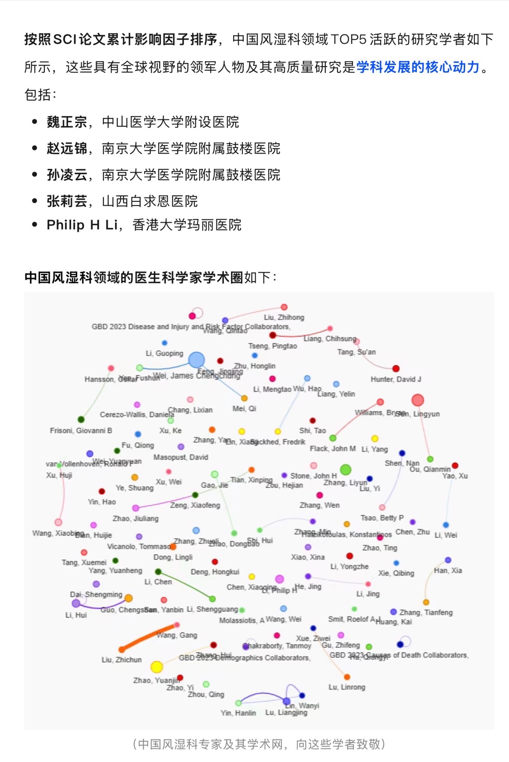 全球風濕科領域TOP5活躍的研究學者