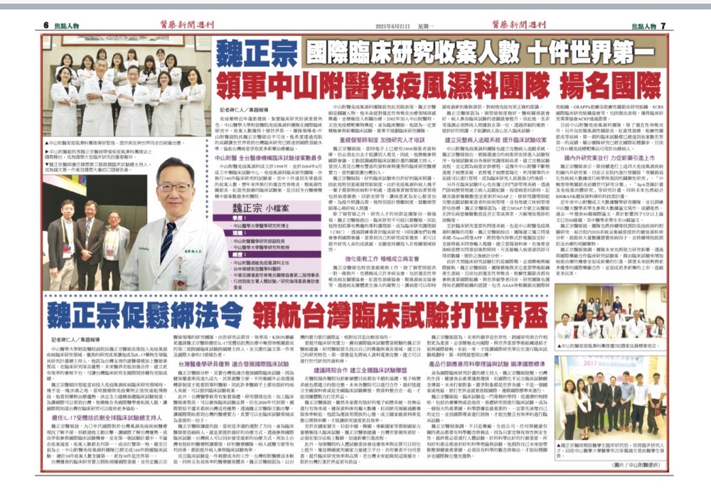到高雄榮總演講「如何成為成功的臨床試驗主持人及機構」,也分享我們過去從創立到發展臨床試驗中心的經驗。整理演講資料時才發現,中山附醫過敏免疫風濕科過去20年間,已經完成200多件跨國臨床試驗,其中有十多件收案數是全球第一名,也有將近10件第一期臨床試驗;更難能可貴的是,我們有50多件主持人自行發起之臨床試驗(IIT)